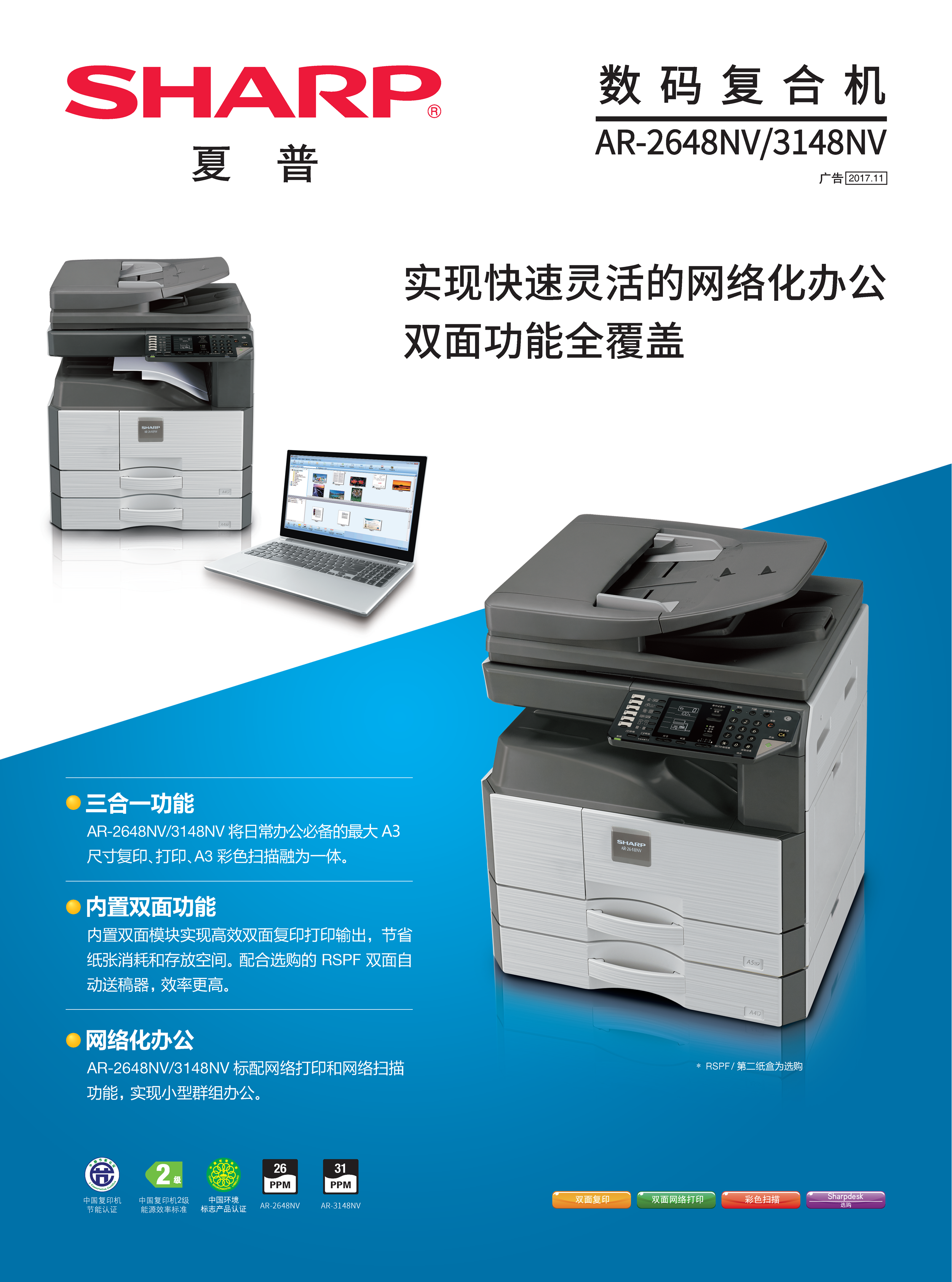 夏普 AR-2648NV/3148NV A3黑白中高速機